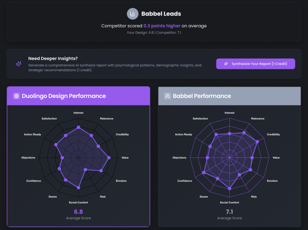 Standard A/B testing might show Babbel’s slight conversion advantage. It wouldn’t reveal why.