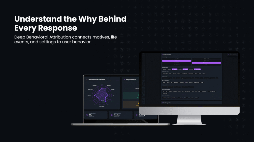 The depth of our emotional modeling means you see beyond surface preferences to understand why people react as they do. Each persona’s response connects to specific life situations, emotional states, and environmental factors that shape their behavior. This understanding enables design decisions based on human psychology rather than demographic assumptions. You learn not only what works but why it works for specific people in particular moments.