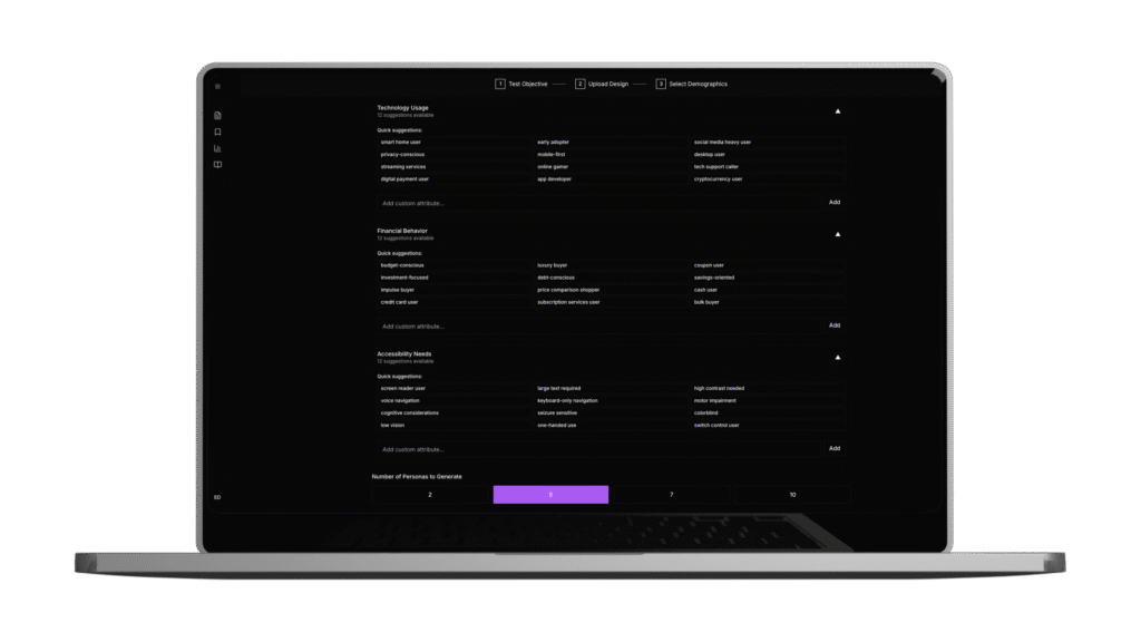 You can build audiences with specific accessibility requirements, rare health conditions, or unique cultural contexts and generate representation for segments traditional research excludes entirely. No premium recruitment fees, no waiting weeks for enough participants to qualify.